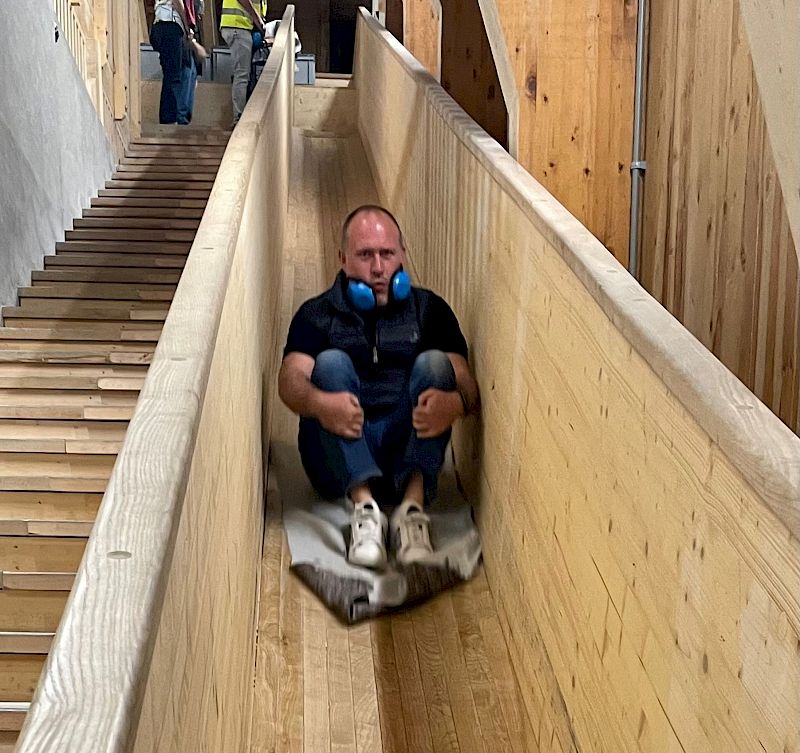 Höhepunkt war ein fachkundig geführter Rundgang durch die Anlage, der die traditionellen und modernen Verfahren der Salzgewinnung aufzeigte. Unterwegs sorgte die Rutschbahn für heitere Abwechslung.