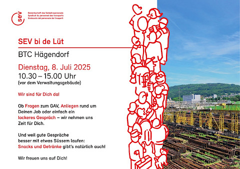 Am Dienstag, 8. Juli 2025 von 10.30 bis 15.00 Uhr lädt der SEV ein zum Werbetag BTC Hägendorf – direkt vor dem Verwaltungsgebäude.